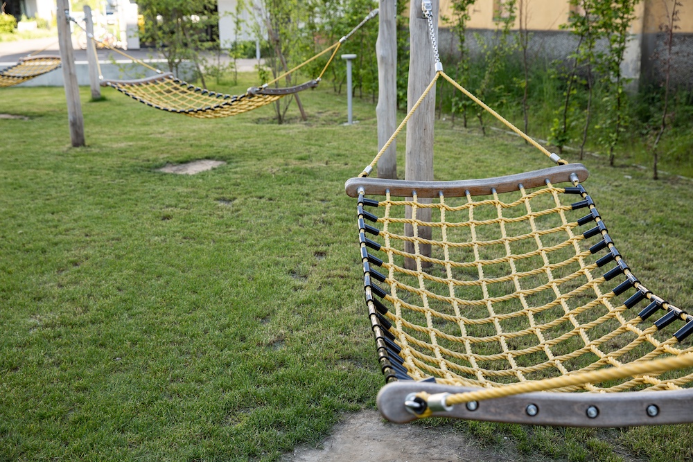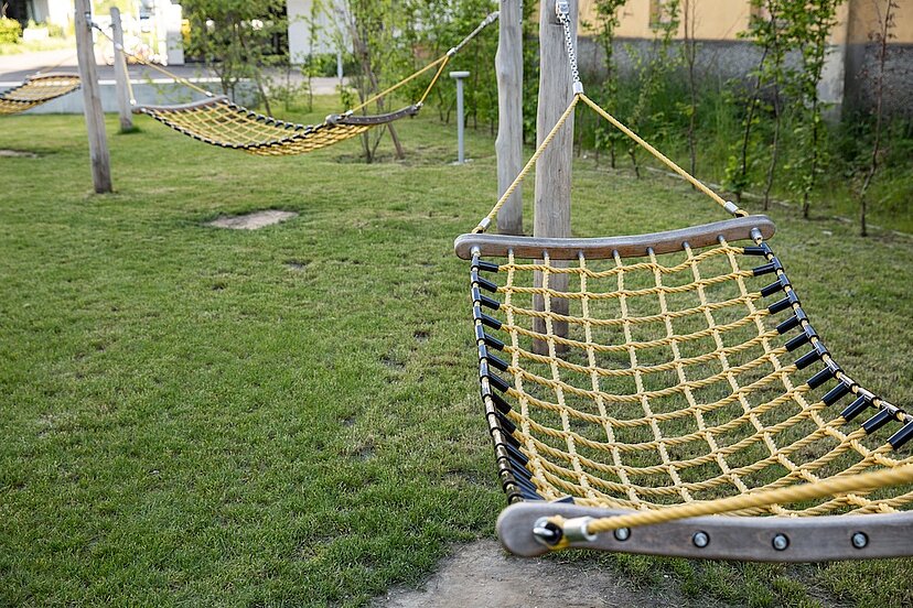 Die Hausgruppe ist zudem vertikal in unterschiedliche Wohnmilieus gegliedert und richtet sich gezielt an ein junges Wohnpublikum mit vielfältigen Lebensentwürfen. Im Erdgeschoss fördern Wohngemeinschaften gemeinschaftliches Leben: Mehrere Einheiten teilen sich großzügige Gemeinschaftsbereiche und öffnen sich unmittelbar in den grünen Außenraum. So entsteht ein lebendiges, kommunikatives Wohnumfeld, das urbane Dichte mit hoher Aufenthaltsqualität verbindet.