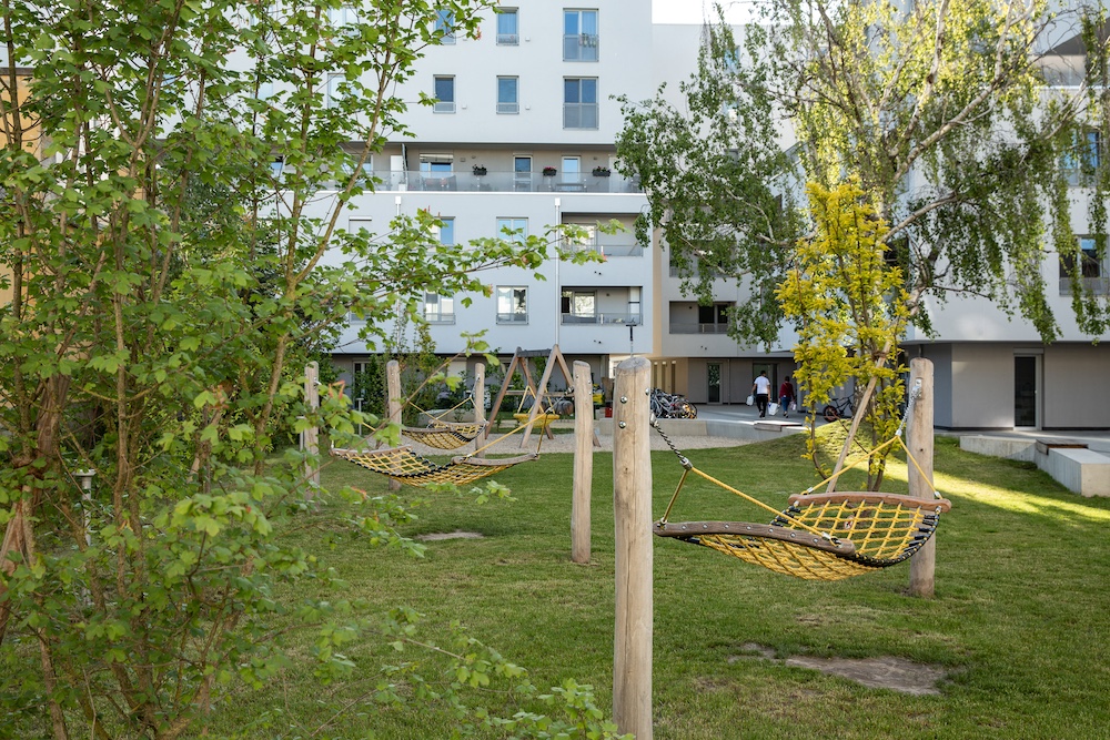Bereits fertiggestellt findet sich heute ein lebendiger, junger Stadtteil in Wien Leopoldau auf dem ehemaligen Areal der Gaswerkanlagen. Die neue Nutzung öffnete das Gebiet für Wohnungssuchende aller Generationen und bietet heute auch Raum für Werkstätten, Gewerbe und nachbarschaftlichen Austausch.