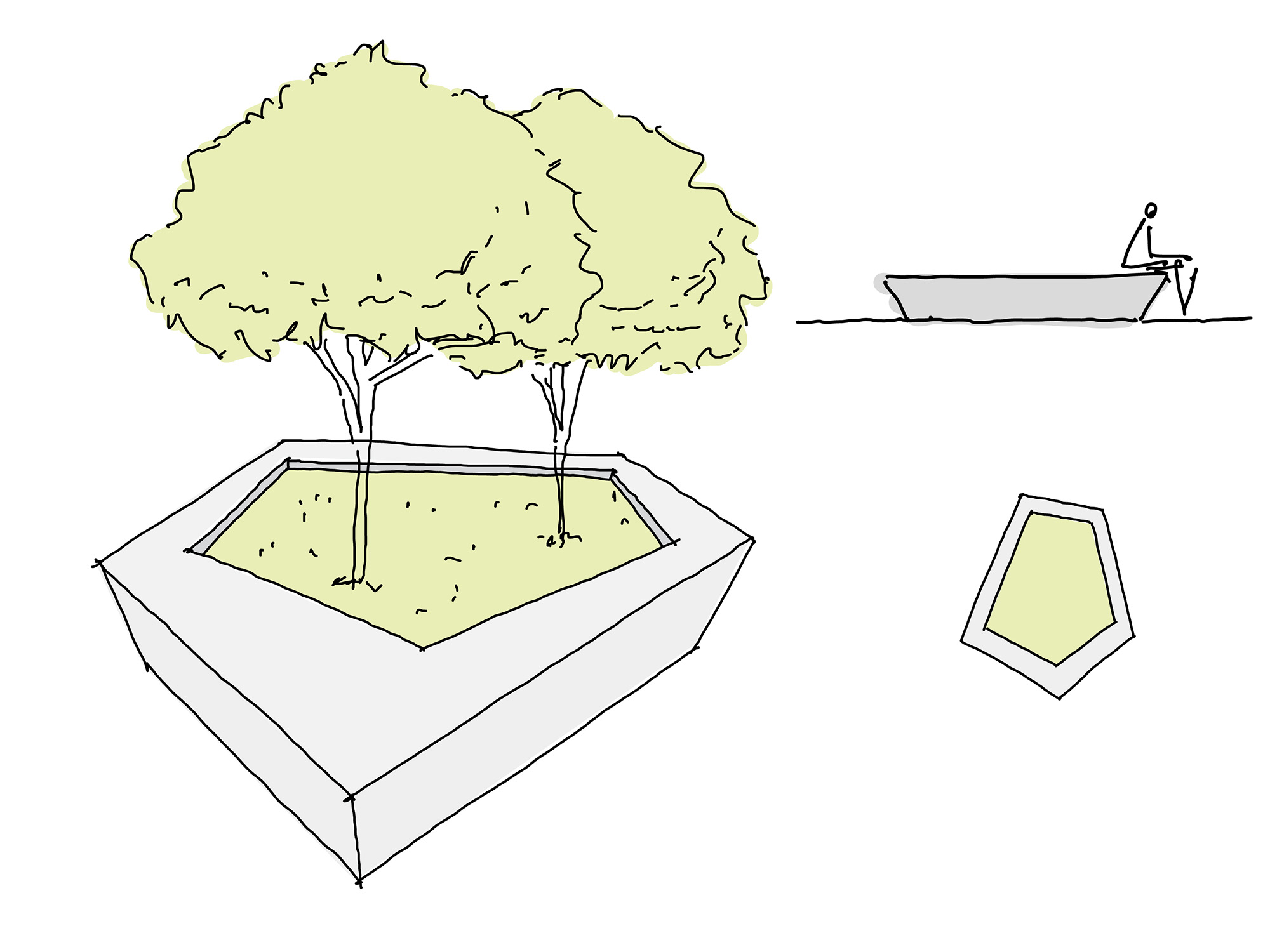 Die neue Firmenzentrale von ŠKODA AUTO wird in Mladá Boleslav gegenüber dem bisherigen Firmensitz gebaut und voraussichtlich in der zweiten Jahreshälfte 2023 bezogen. Das neue Gebäude setzt Maßstäbe in Sachen Nachhaltigkeit: Die Deutsche Gesellschaft für nachhaltiges Bauen (DGNB) plant, für das neue Gebäude ein Zertifikat in Gold zu vergeben. Die landschaftsarchitektonische Planung der 9.000 m2 weiten Freiflächen begann mit dem Zugang zum Haupteingang des Bürogebäudes, der über einen großzügigen Vorplatz mit bepflanzten Betontrögen erfolgt. Wie Schollen rahmen sie den Vorplatz und verhelfen zu einem identitätsstiftenden Raumcharakter. Mittelgroße Laubbäume säumen den Weg und bieten einen schattigen Aufenthaltsort im Eingangsbereich. Integrierte Beleuchtungsbänder und Steckdosen sind zusätzliche Highlights des Vorplatzes. Inspiriert von der Formensprache der CI von Škoda ziehen sich die polygonale Form der Pflanztröge und die abgeschrägten Sitzkanten wie ein roter Faden durch den gesamten Außenraum des Gebäudes. Die Dachterrasse im 1. Obergeschoss ermöglicht den Mitarbeitenden einen attraktiven Pausen- und Arbeitsraum im Freien. Dabei wird ein hoher Wert auf Biodiversität und artenreiche Bepflanzung gelegt. Mehrstämmige Bäume ergänzen die Gräser- und Staudenpflanzungen und schaffen schattige Aufenthaltsorte. Mobile Sitzelemente vervollständigen das Ensemble am Dach.