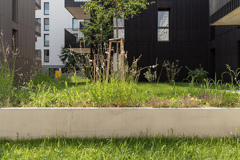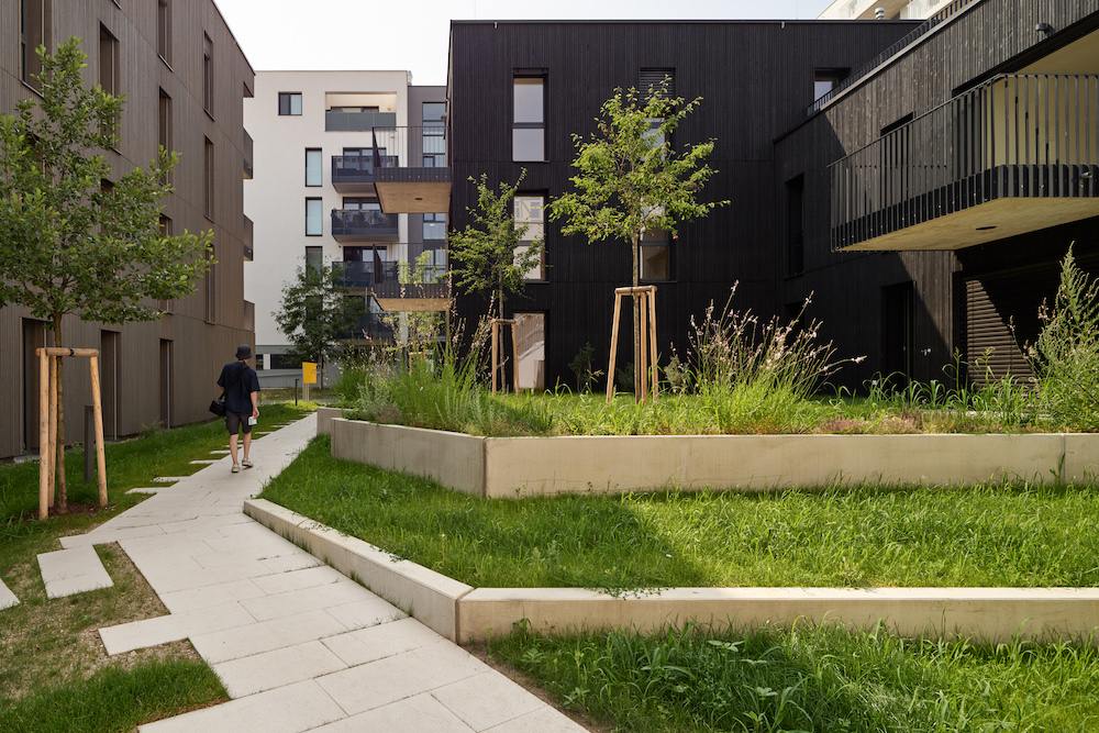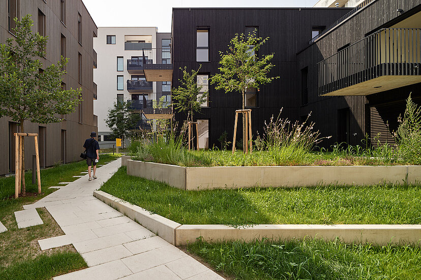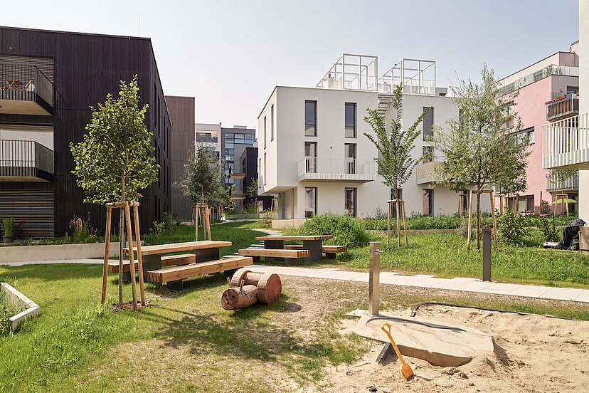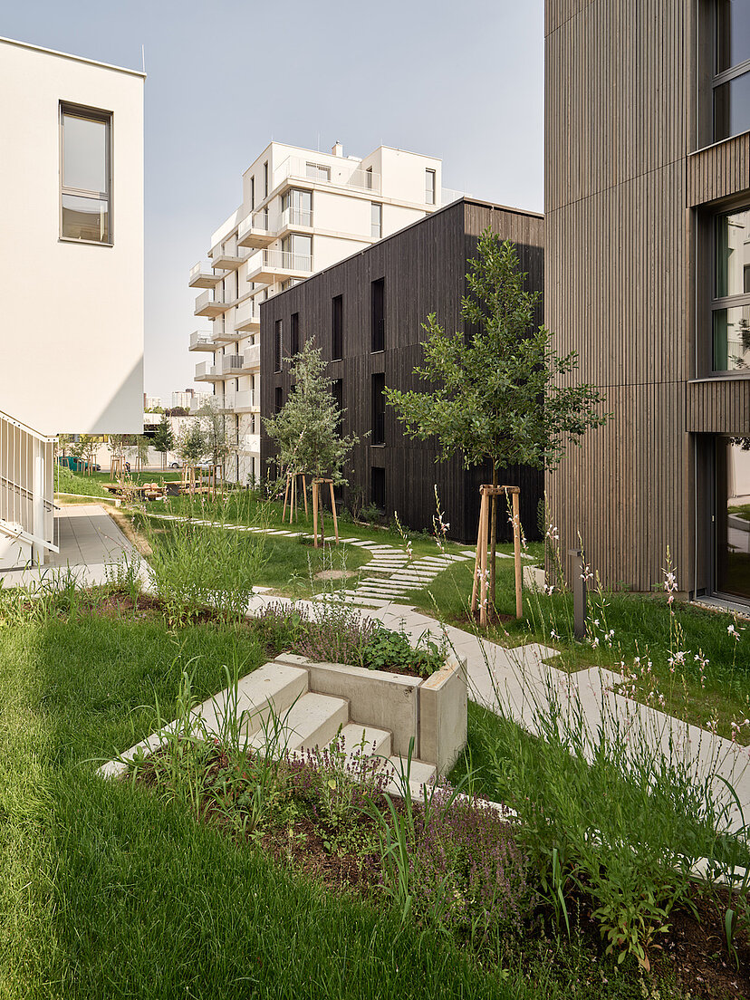 Im 12. Wiener Gemeindebezirk entsteht ein gemeinschaftlicher Stadtteil mit rund 1.100 freifinanzierten und geförderten Wohnungen, in dem ökologische und soziale Nachhaltigkeit großgeschrieben werden. Der Entwurf zeichnet sich durch eine großzügige Grünanlage kombiniert mit vielfältigen Wohnungstypen in unterschiedlichen Gebäuden aus.