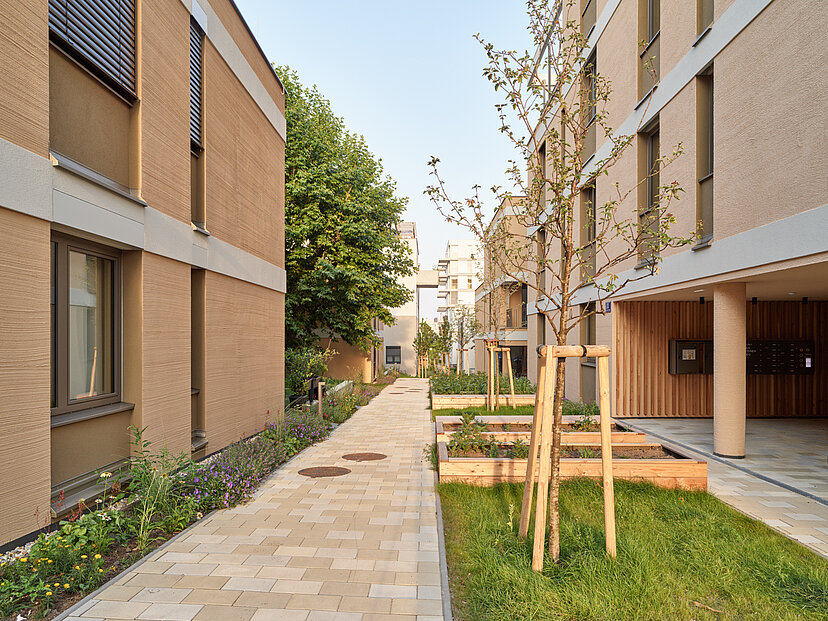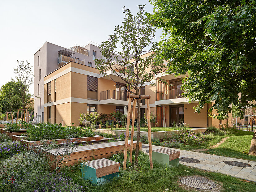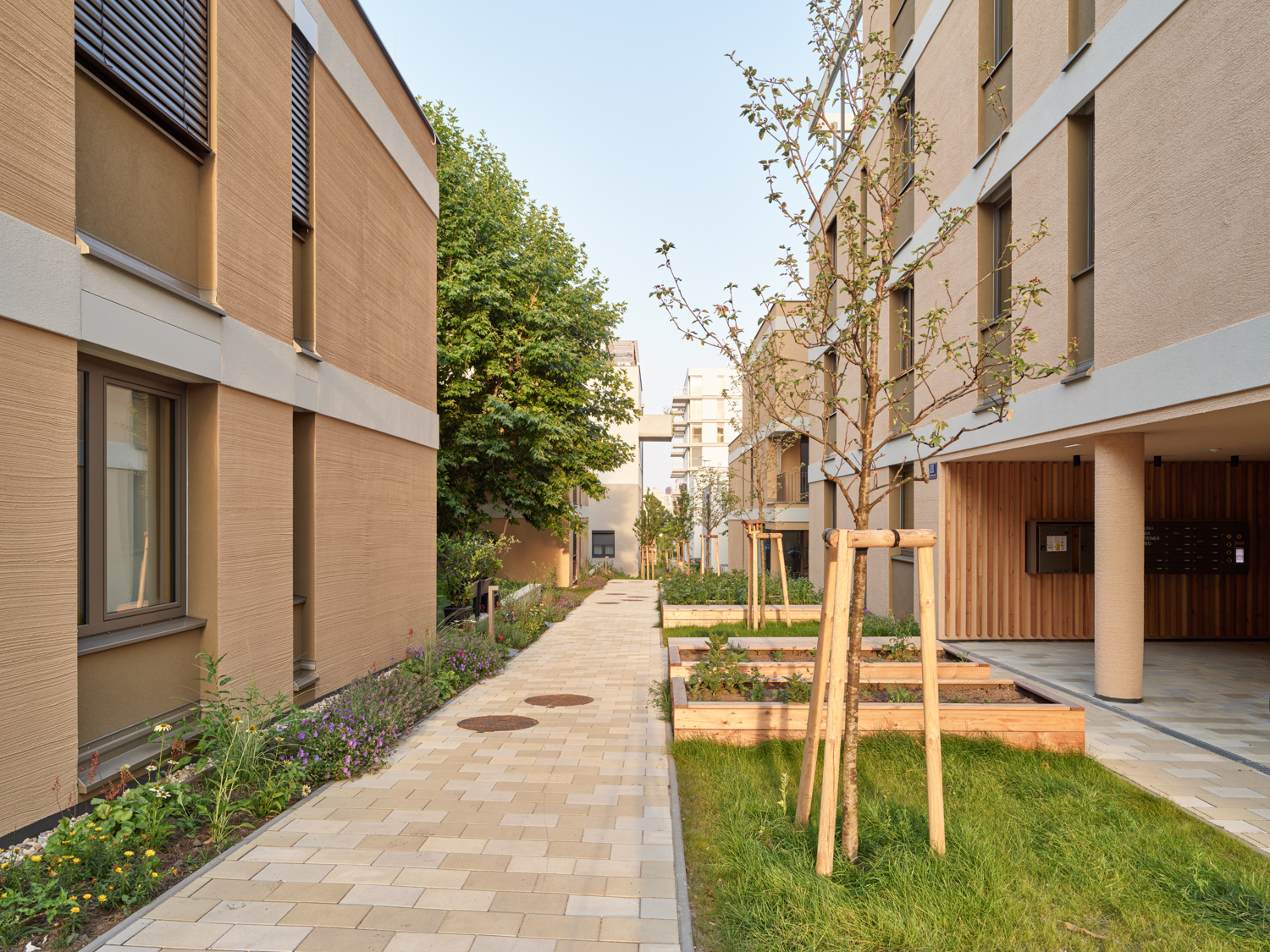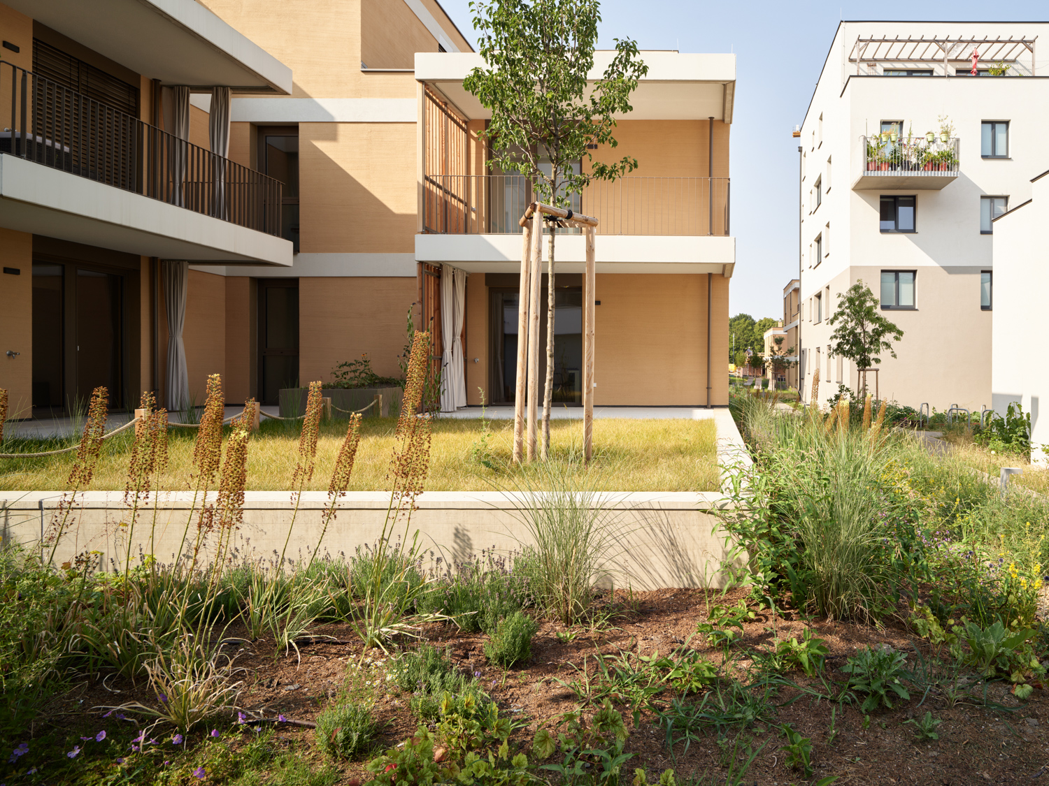 Das Wohnquartier Wildgarten im 12. Wiener Gemeindebezirk wird auf über 10 ha. für ca. 2.300 Menschen ein neues Zuhause bieten. Die Bauplätze 9 und 13 sind zentral am Quartiersplatz Servus des Wildgartens gelegen mit Außenanlagen, die viel Möglichkeit zur nachbarschaftlichen Begegnung bieten.