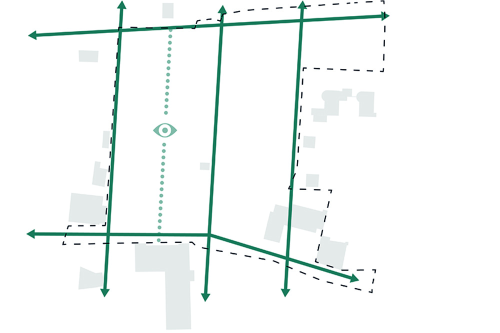 Das sehr landschaftliche Grundstück zwischen Château Muntelier und Lac du Morat (Murtensee) gilt es auf mehreren Ebenen zu verbinden. Die offensichtlich barocke Achse vom Schloss erfährt eine Doppelung durch die Landschafts-Achse mit der neuen Buvette und dem Badi am See. In Querrichtung gilt es beide Gartenräume zu verbinden. Ein neu implementierter, für das Projekt namensgebenden „Cadre en bois“ bildet den notwendigen Rahmen aus Holzelementen, ein ortstypisches Material am See. Er umklammert nutzungsoffene Räume, die auf der einen Seite repräsentativ als Barock-Wiese und auf der anderen Seite dörflich als Spiel-Wiese nutzbar sind.