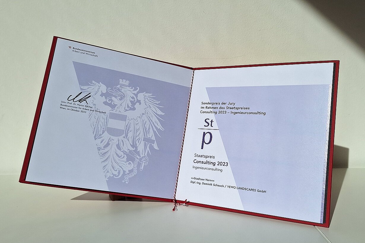 YEWO LANDSCAPES hat beim ACA Staatspreis Consulting - Ingenieurconsulting 2023 den Sonderpreis der Jury für das Projekt "Stadtsee Horn" erhalten. Die Auszeichnung wurde von Austrian Consultants Association (ACA) verliehen und würdigt exzellente Leistungen im Bereich der Ingenieursconsulting und Planung von Bauprojekten.