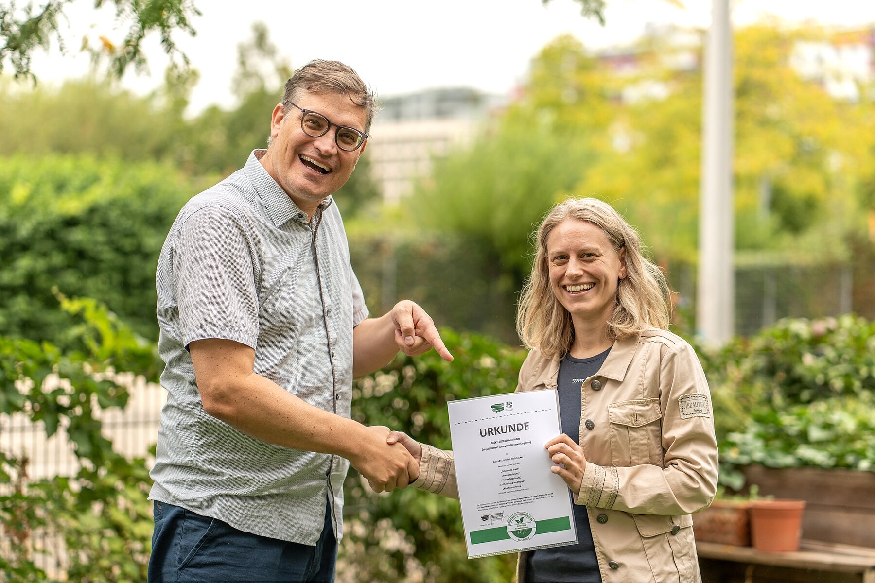 Herzlichen Glückwunsch an Astrid zum erfolgreichen Abschluss des Kurses zur Bauwerksbegrünung! Wir freuen uns sehr, mit ihr nun eine qualifizierte Absolventin und zertifizierte Beraterin für klimaaktive Städte in unserem Team zu haben. Ihr Fachwissen stärkt unser Engagement und erweitert unsere Expertise in den Bereichen grüne Infrastruktur, Klimaanpassung und nachhaltige Stadtentwicklung.
