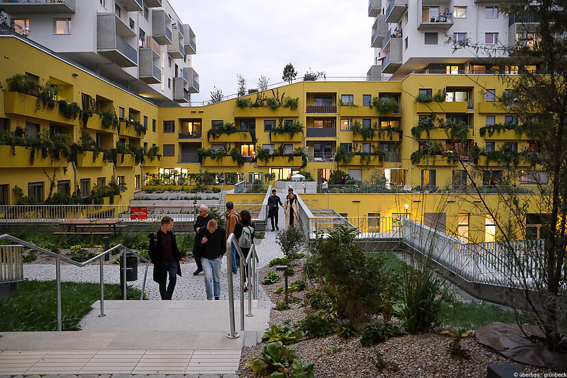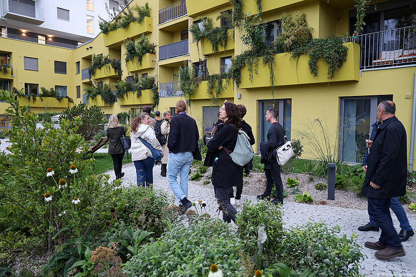 Ein Highlight der Veranstaltung war der Rundgang über das Gelände, bei dem die Besucher:innen das "Grüne Band" und deren Umsetzung vor Ort erleben konnten. Dieses Konzept, das auf naturnahe Begrünung, nachhaltige Landschaftsgestaltung und Fassadenbegrünung setzt, stieß bei den Teilnehmer:innen auf großes Interesse und wurde intensiv diskutiert.