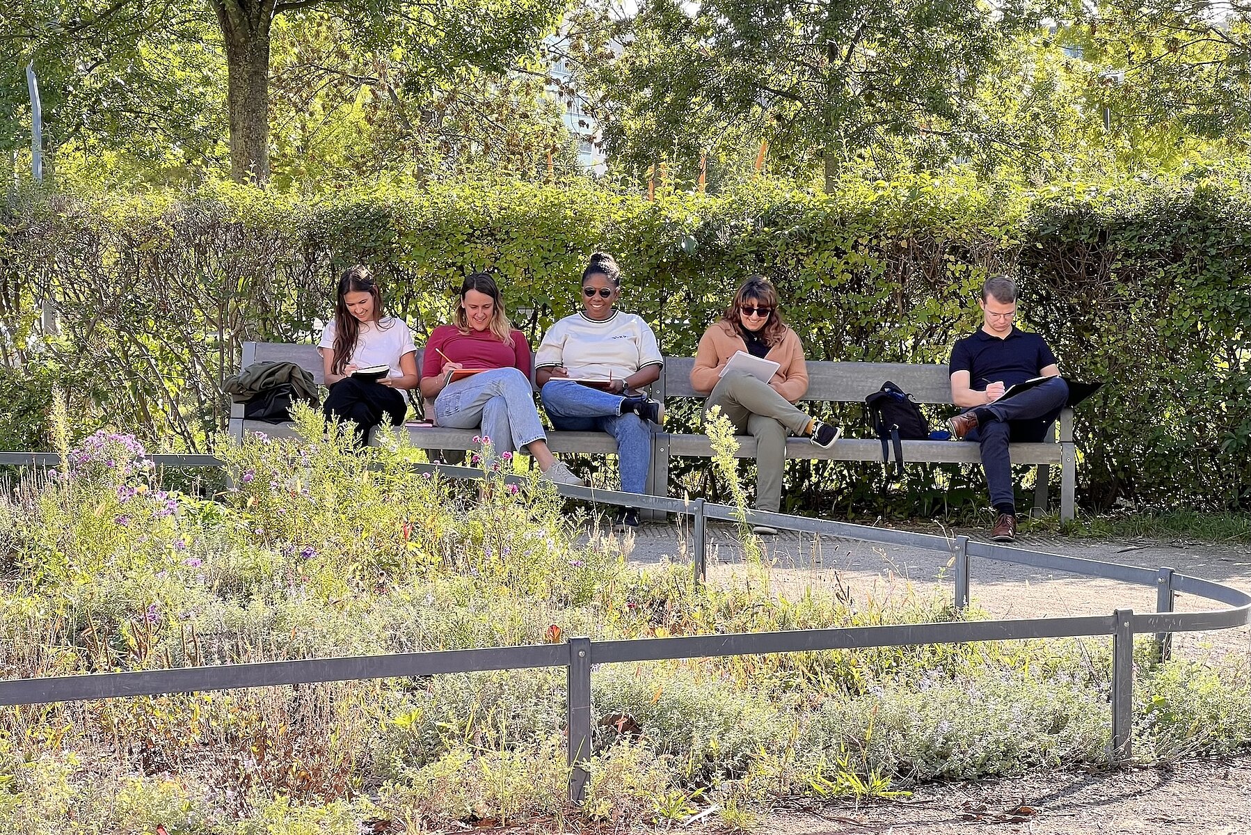 Als erfrischende Abwechslung zum Büroalltag haben wir den gestrigen Nachmittag für eine kreative Übung im Team genutzt. Ausgestattet mit Skizzenbuch und Stift zog es uns bei strahlendem Sonnenschein in den nahegelegenen Park – perfekt um die Umgebung mit kreativem Blick neu zu entdecken! J