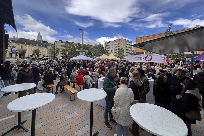 Der Schlossplatz integriert Grünflächen und Sitzgelegenheiten, bietet Platz für Veranstaltungen und lädt zum Verweilen ein. Unterirdisch sind Schwammstadtkörper am Werken und speichern das Regenwasser zwischen. Sie ermöglichen damit die Versickerung und entlasten das Kanalsystem bei Starkregen. Dank lokaler Verdunstung wird das Mikroklima insgesamt verbessert. Während der Eröffnung konnte der Schlossplatz auch gleich auf seine Adaptabilität für Veranstaltungen getestet werden, mit sehr positivem Ergebnis. Wir freuen uns, einen Beitrag zur Lebensqualität des Stadtzentrums von Bad Vöslau geleistet zu haben und sind gespannt auf weitere Berichte der Bewohner:innen.